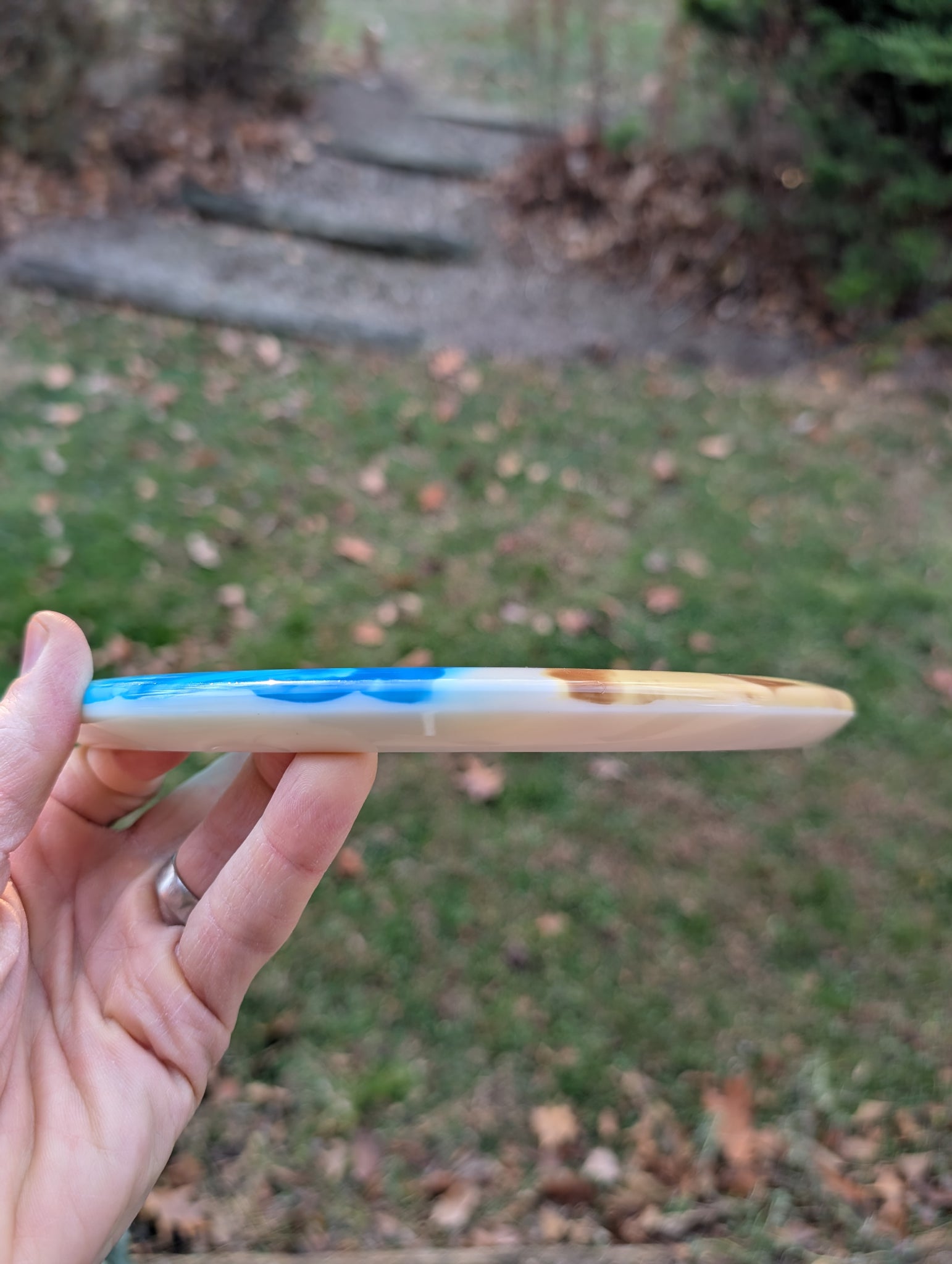Calvin Heimburg was the inspiration behind the Toro. He wanted a flat-top, overstable, mid-range disc that he could have confidence in—something that could handle his level of forehand torque. After several variations, the Toro was created and named by Calvin. —Dave Dunipace