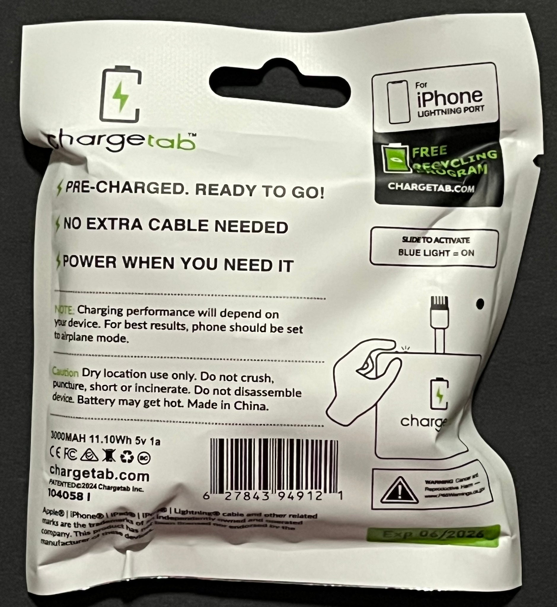 ChargeTab Emergency Phone Charger - iPhone Lightning